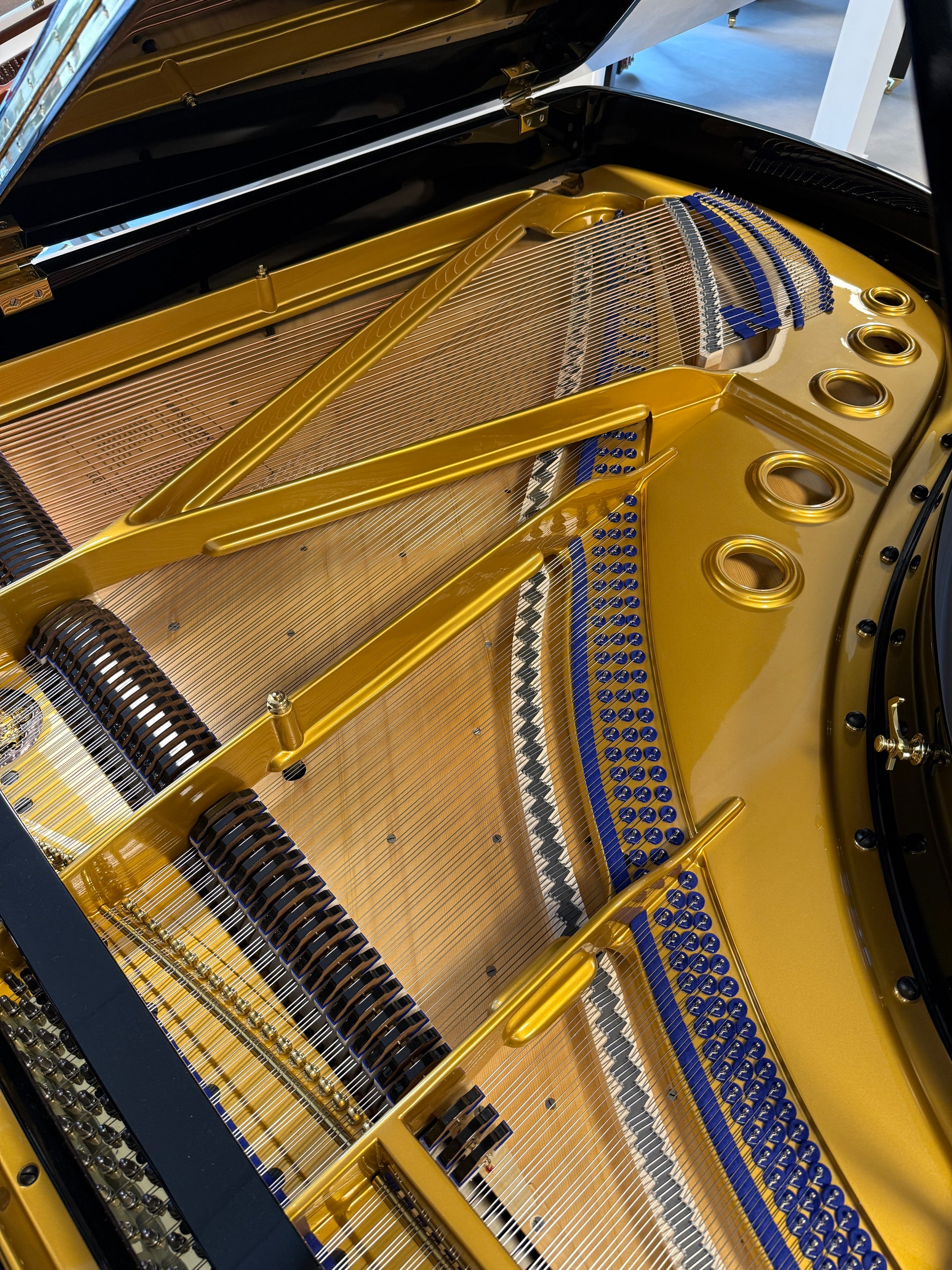 Deze Blüthner 190 Suprême Edition vleugel is een uitzonderlijk instrument uit de hoogste kwaliteitslijn van Blüthner. Een model dat bekendstaat om zijn warme, goudkleurige klank, verfijnde draagkracht en ongekende nuance in aanslag en expressie.