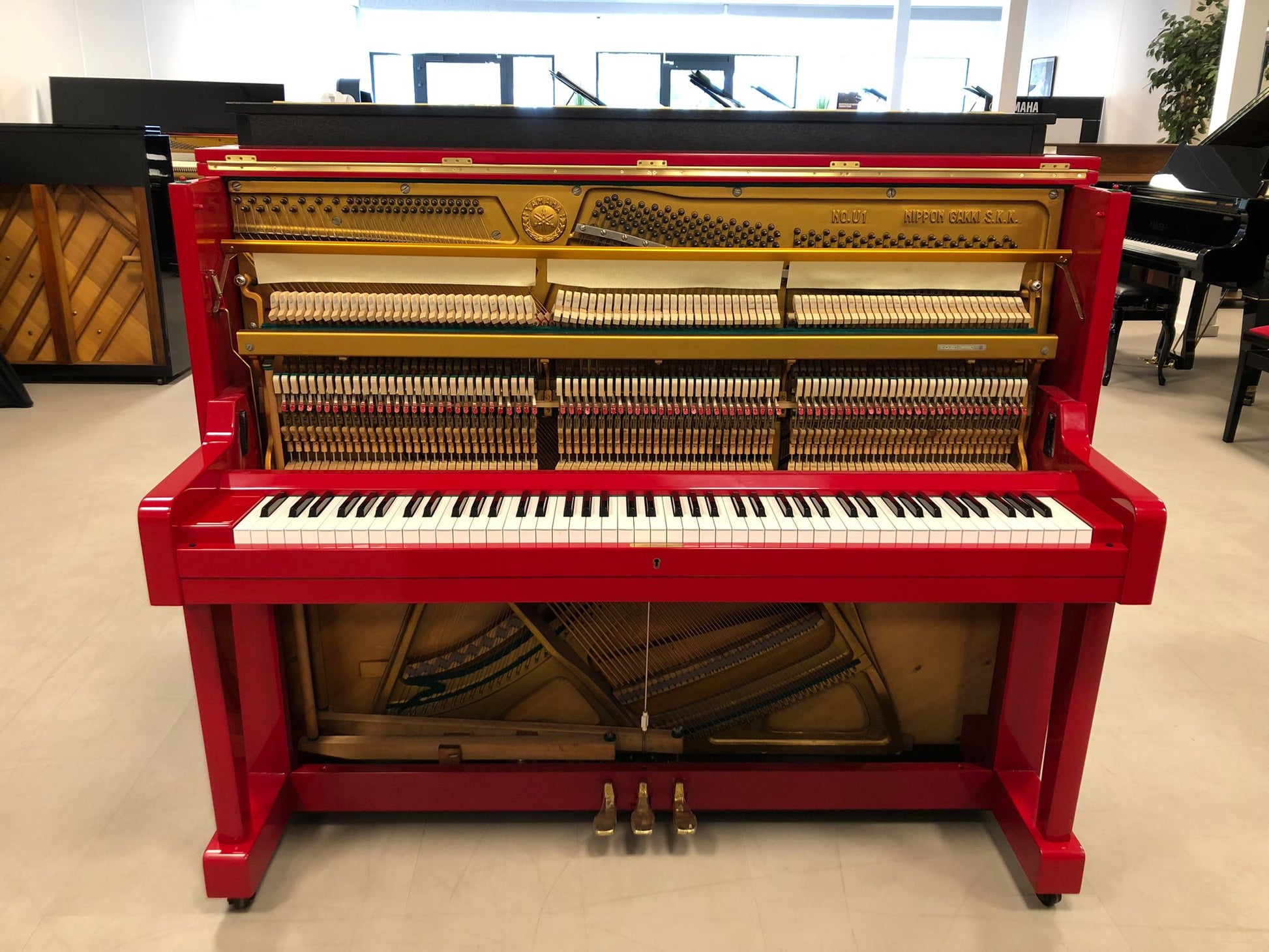 Yamaha U1 – Upright Piano (121 cm, rood hoogglans, compleet als nieuw gereviseerd)